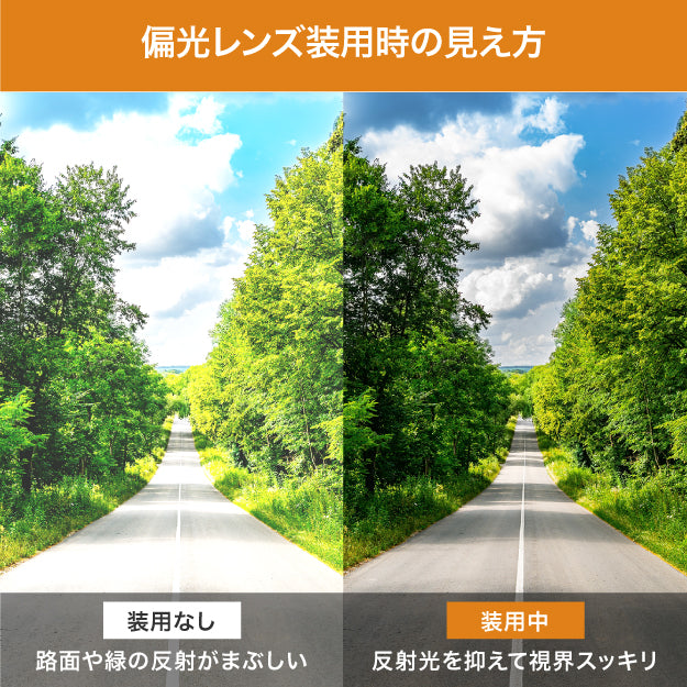 道路や水面、フロントガラスの反射光を抑え、視界をクリアに。車の運転時の安全性UP、釣りやマリンスポーツでも水面のギラつきを軽減し、ストレスのない視界を提供します。