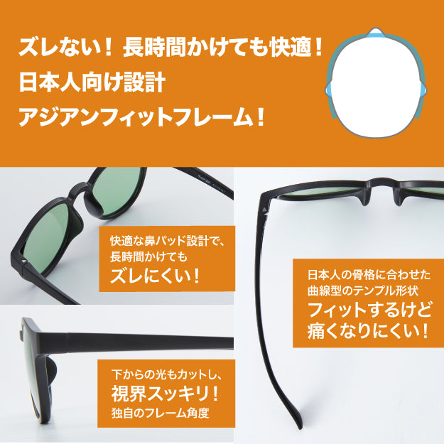 長時間かけてもズレにくい日本人の骨格に合わせたアジアンフィットフレームを採用。