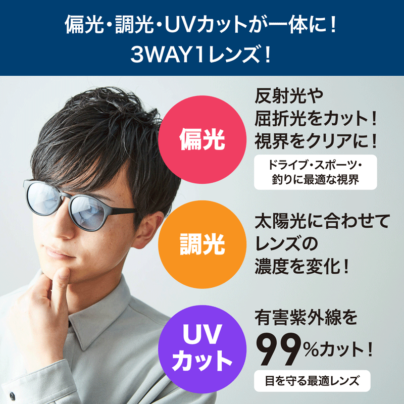 - 【UVカット 99% 以上】偏光・調光機能でクリアな視界!